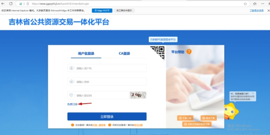 长春经开区公共资源交易中心-吉林省一体化交易平台统一登录入口见下图: