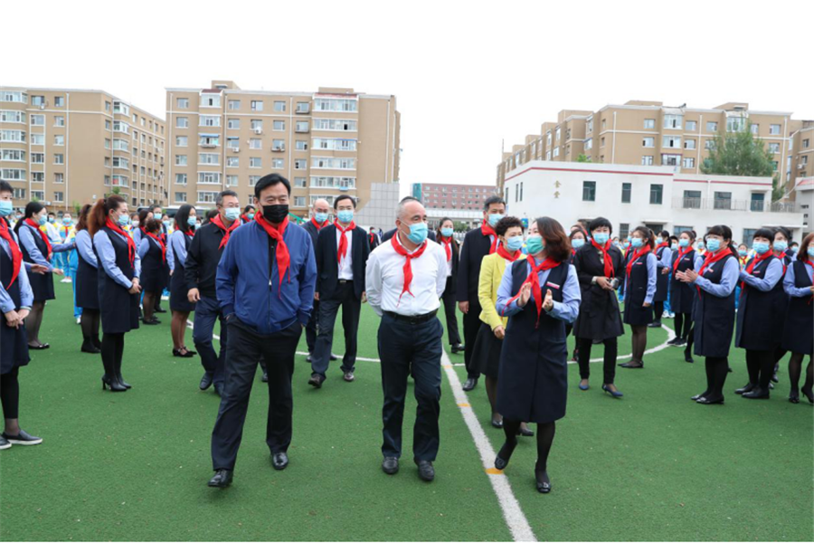 首先各位领导参加了庄严的开学升旗仪式,聆听了大队辅导员和少先队员国旗下的讲话,为孩子们送上了节日礼物,鼓励他们努力学习、强健体魄、茁壮成长。随后参加了学校师德宣誓和校长新学期致辞活动,欣赏了学生疫情防控书画作品。泉秀主任详细询问了学生返校和疫情防控工作,认真查看了学校测温、消毒设施和物资储备情况,并强调务必将防控措施落实到位,全力保障师生的生命安全,要以此次疫情防控为契机厚植学生的家国情怀。