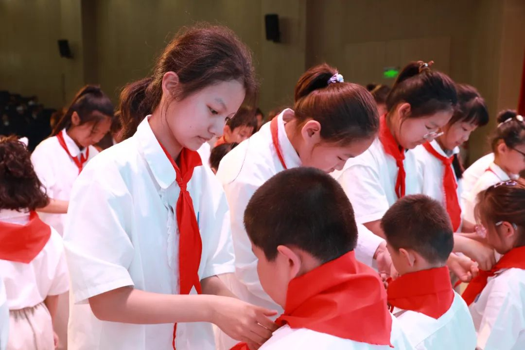“我是中国少年先锋队队员,我在队旗下宣誓:我热爱中国共产党,热爱祖国……”新队员们在大队长张荣的带领下,高举右拳,庄严宣誓。他们的誓言铿锵有力、掷地有声,回荡在校园的每一个角落。这一刻,他们不仅成为了少先队员,更承担起了为共产主义事业而奋斗的崇高使命。